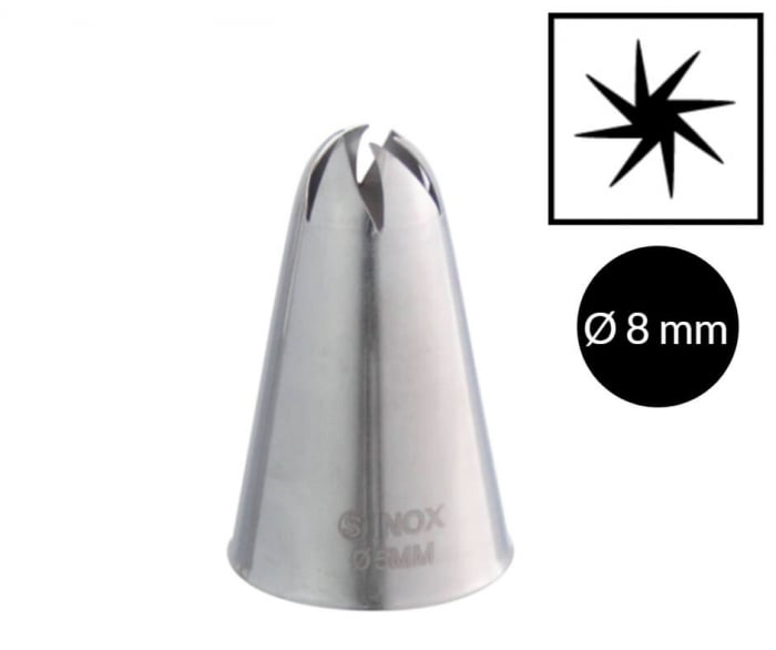 Decorați deserturile într-un mod original cu Dui / Sprit cu varf rotund-zimtat, forma Floare Deschisa, dintr-o singura bucata de otel inoxidabil.